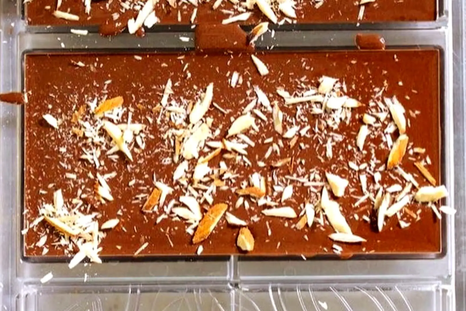 After cooling, the roasted cocoa beans are then placed inside a grinder, which grinds the beans into a coarse mixture of the cocoa beans and cocoa nibs.
