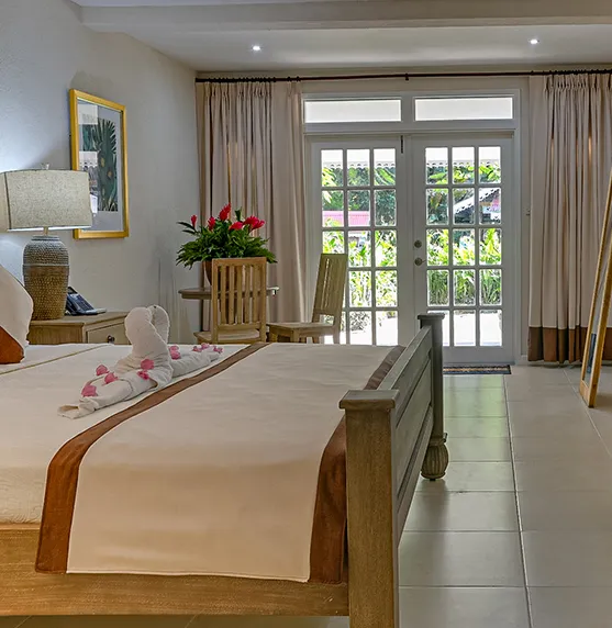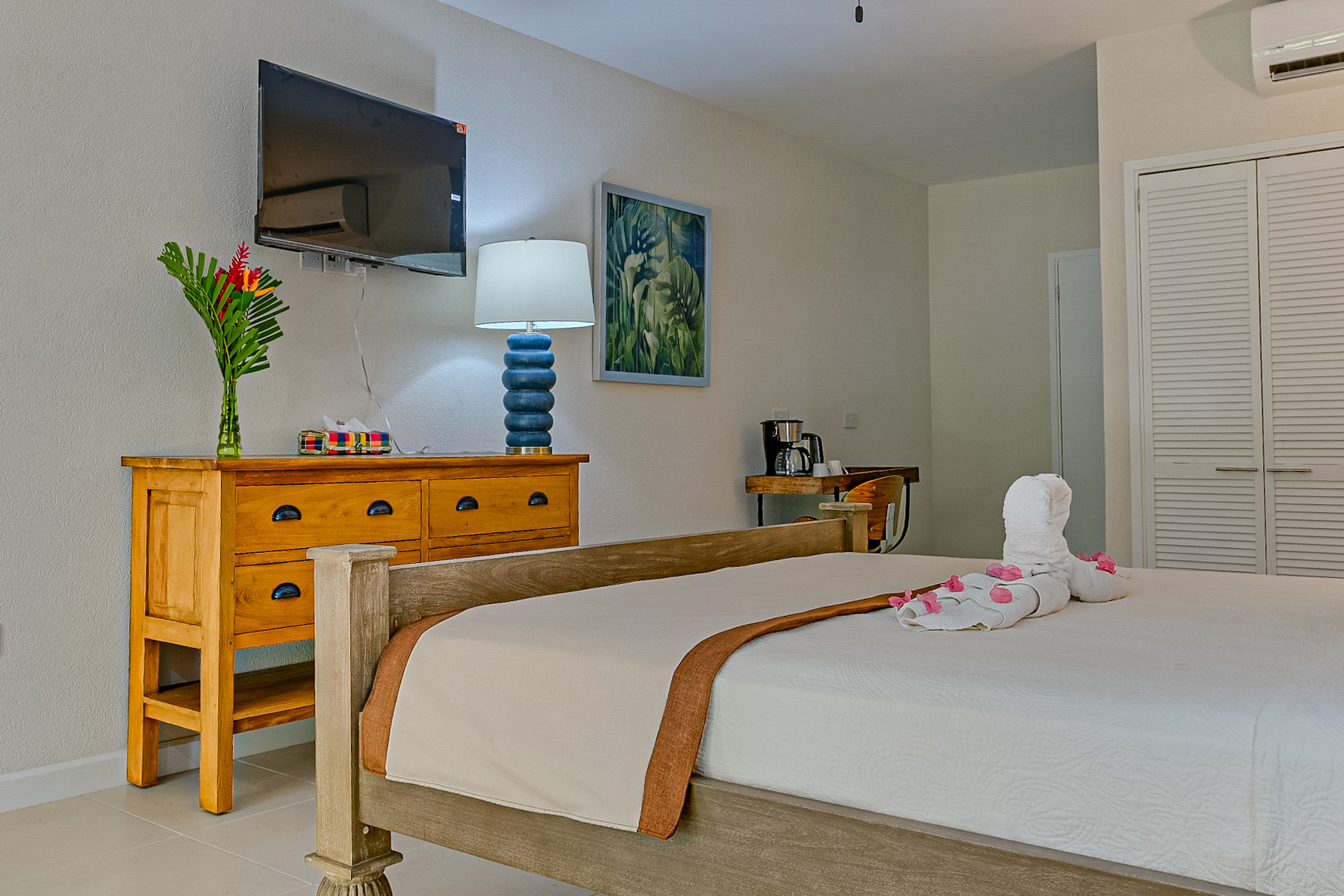 The Courtyard Patio King Suite features all the comforts of the resort cottages, as well as air conditioning, and is the perfect place to unwind after the day’s adventures. This suite is located within the confines of the restaurant, bar, reception, and courtyard. The air conditioned Courtyard Patio King Suite consists of king bed configurations ideal for couples and singles.